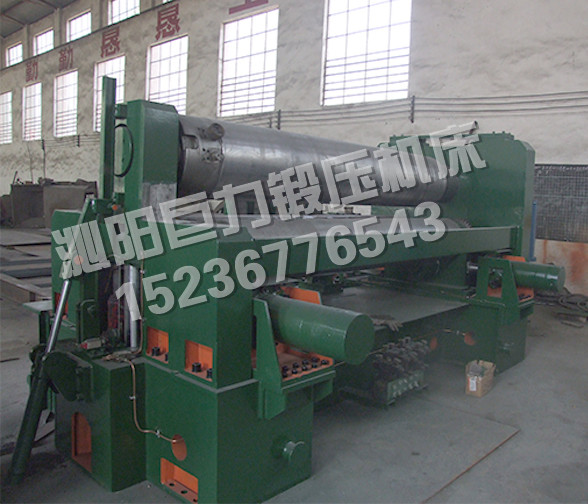 2、三個工作輥均為主動輥,上輥升降和兩下輥平移均由NC控制,確保對任何厚度的板材有良好的送進卷制功能,且板材始終處于夾緊狀態(tài),避免板材滑動、跑偏;