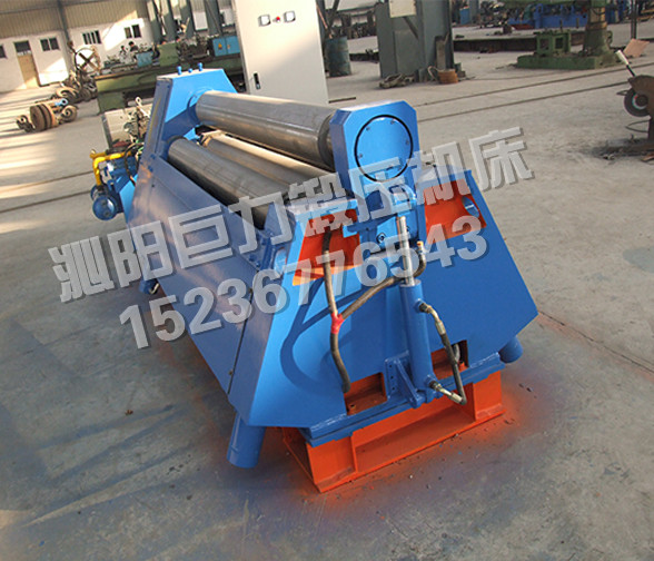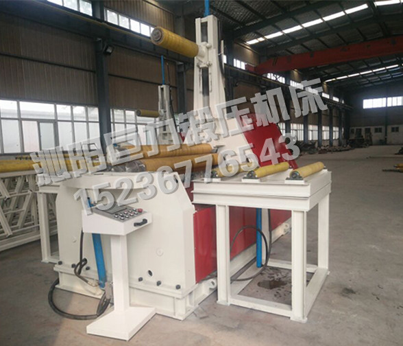 該四輥卷板機(jī)與對(duì)稱三輥卷板機(jī)比較,它可以不借助其它設(shè)備模具,直接予彎板材端部,而且剩余直邊較??;它可以不使板材調(diào)頭,而卷成工件。